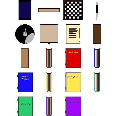 How many dad's dread getting these at Christmas time? A top down view of a desk complete with papers, a pen, blotter, and inkwell. The pen, inkwell, and papers are also available as seperate symbols. And if you zoom in quite close on the paper, you may get an idea what the owner of this desk does for a living.